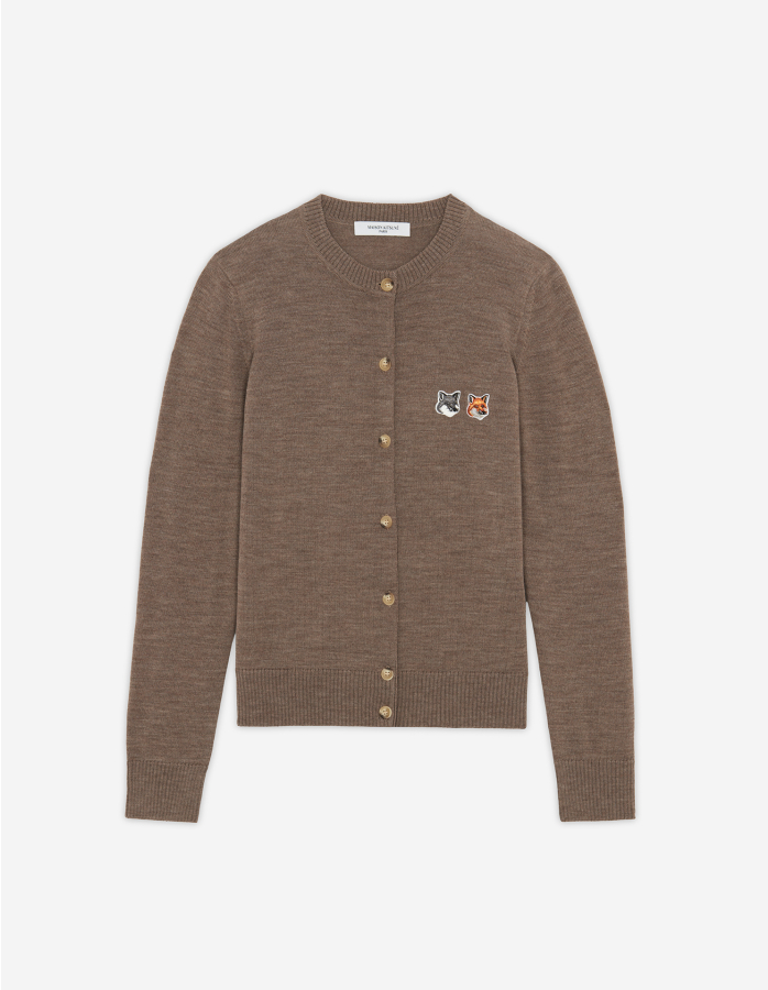 Double Fox Head Patch R Neck Cardigan Maison Kitsune